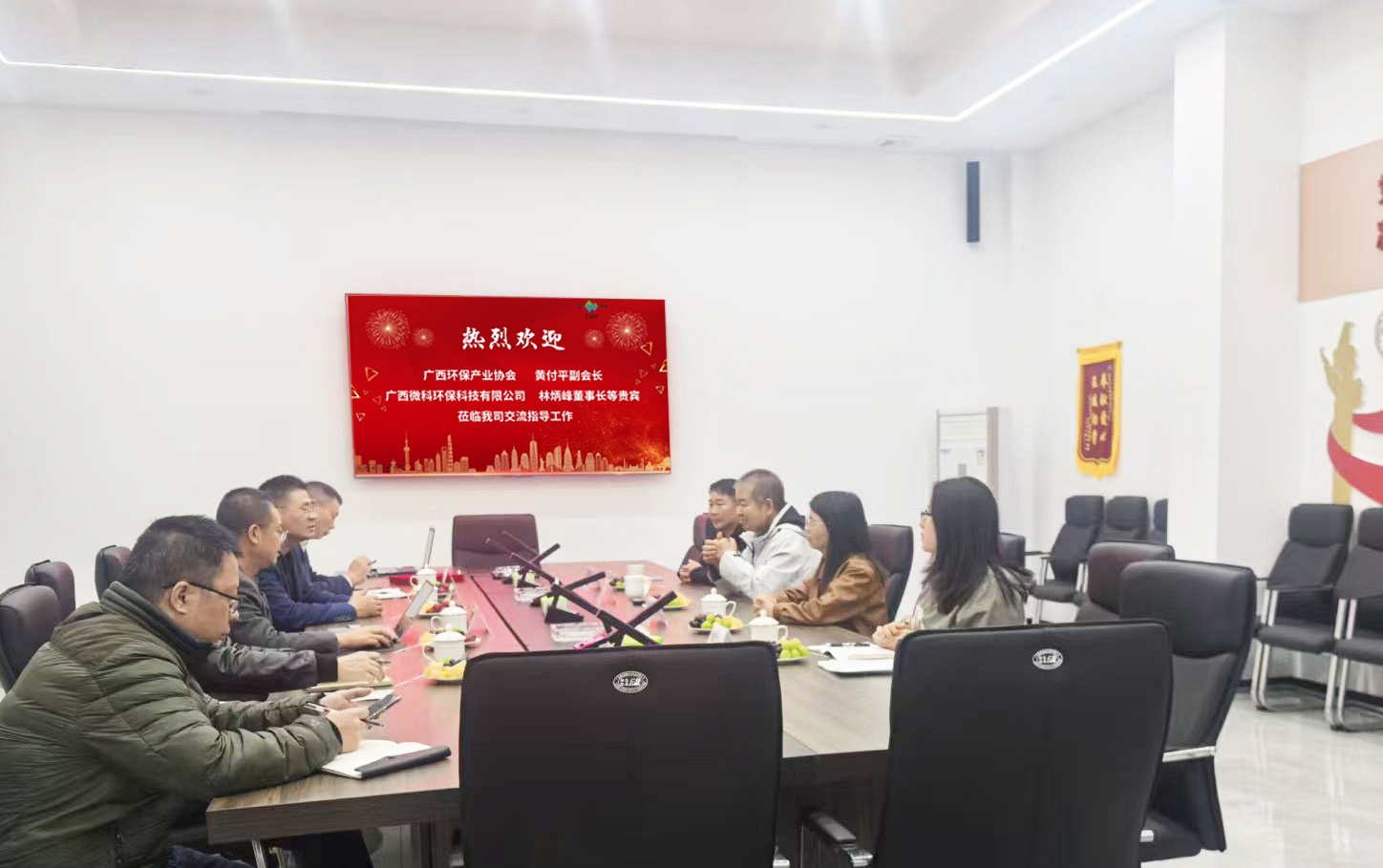 ? ? ? 參觀結(jié)束后,雙方聚焦行業(yè)痛點與發(fā)展機(jī)遇,召開專題技術(shù)交流會。邵總首先代表公司對黃付平會長一行的蒞臨表示熱烈歡迎,隨后詳細(xì)介紹了川寧環(huán)保核心團(tuán)隊的構(gòu)成、專業(yè)背景及多年來在環(huán)保領(lǐng)域的深耕成果,讓貴賓們進(jìn)一步了解公司的人才優(yōu)勢與發(fā)展底蘊。